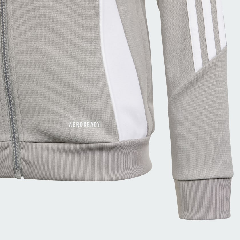 Sail through every drill in this slim-fitting adidas training jacket for juniors. Created to support high-performance soccer during chilly sessions, it’ll keep you focused thanks to AEROREADY technology that wicks away moisture. Zip pockets mean you can reach for essentials like energy bars when there’s a break in play. This product is made with 100% recycled materials. By reusing materials that have already been created, we help to reduce waste and our reliance on finite resources and reduce the footprint of the products we make.