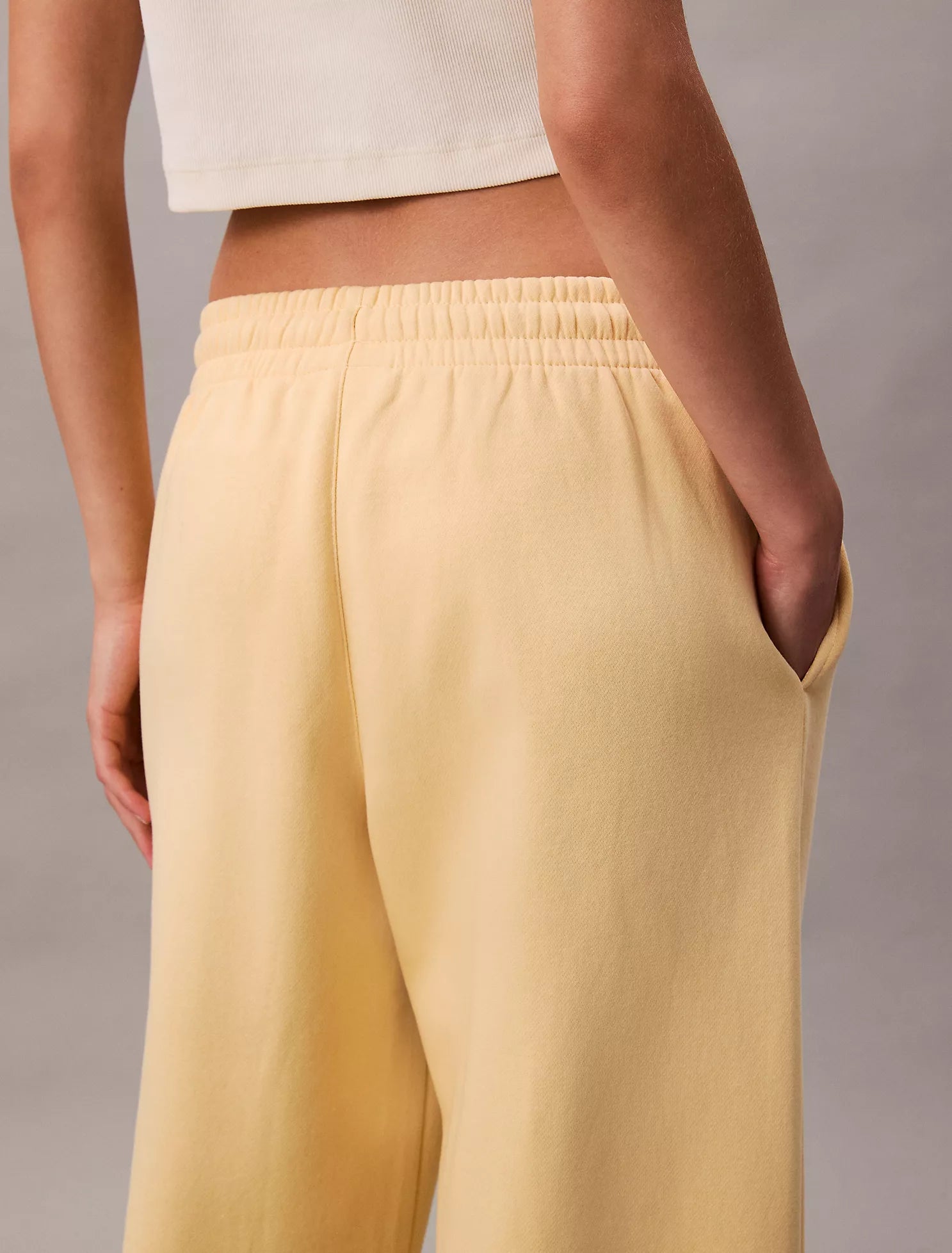 Soft fleece in a wide leg silhouette. These pants have a flexble waistband and slip pockets at both sides. Printed with a monogram logo at the upper leg.