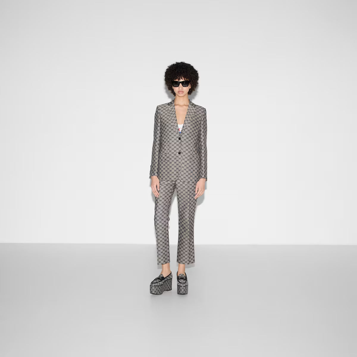 Inspired by the summer spirit and beach clubs on the Italian coast, this item is part of Gucci Lido. Emblematic codes of the House and refined patterns are reinterpreted in contemporary ways for the Pre-Fall collection. This tailored jacket is presented in camel and ebony Original GG canvas, making for a striking seasonal addition to your wardrobe.