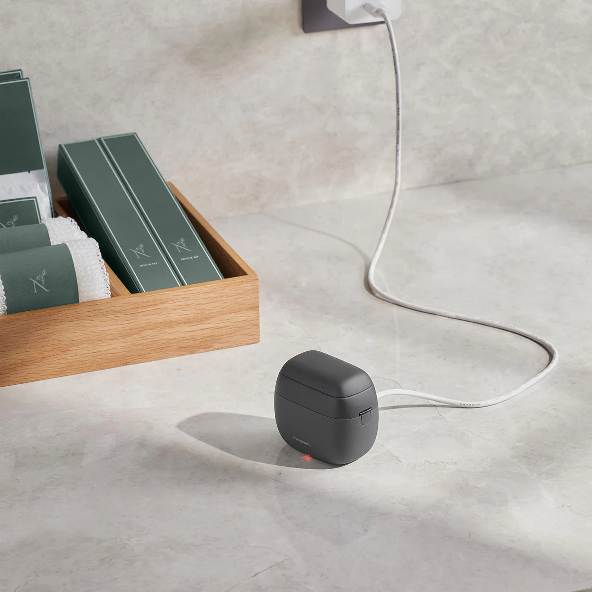 Aligned with Panasonic’s goal of creating a more recyclable, sustainable world, the ARC5 PALM-sized shaver body has been crafted with NAGORI® (ES-PV6A-W only), a sustainable material created from sea minerals.