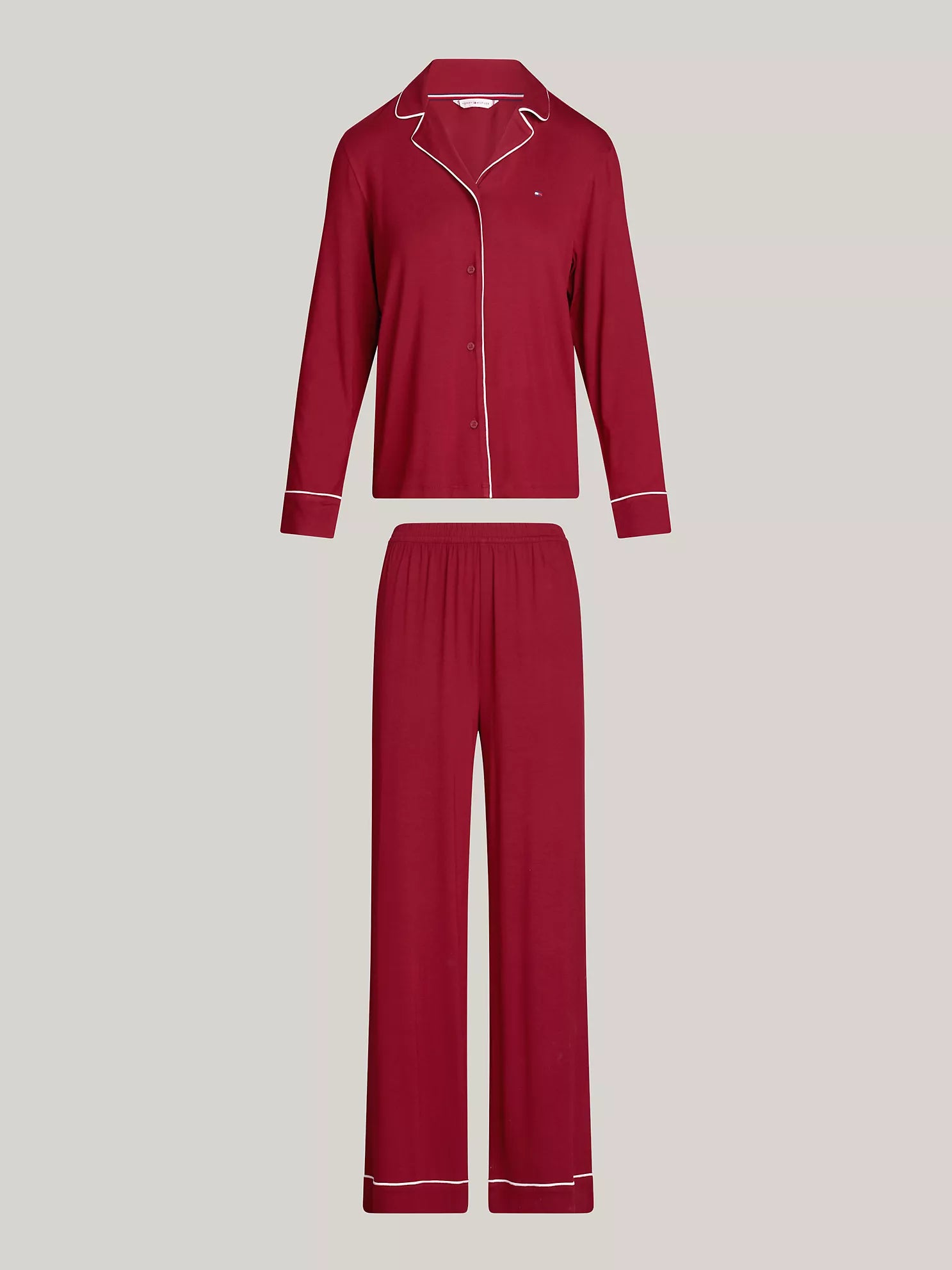 Tommy Hilfiger women’s sleepwear. Sweet dreams begin with comfy pajamas. This pajama shirt and pant set delivers in silky soft, stretch modal fabric with piped detailing.