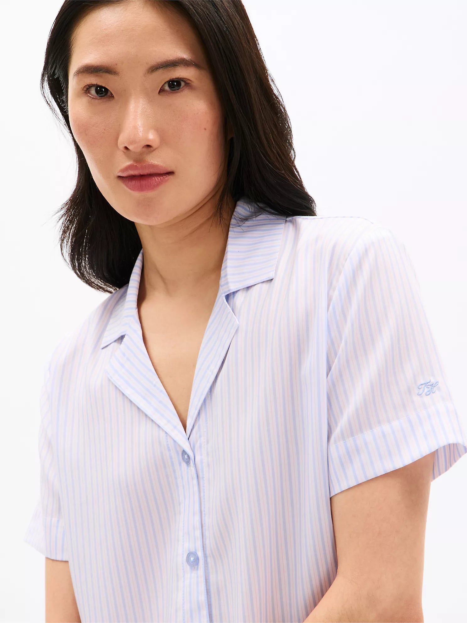 Tommy Hilfiger women’s sleepwear. Sweet dreams are made of these: our soft and silky pajamas, featuring a matching stripe top and elastic drawstring pants.