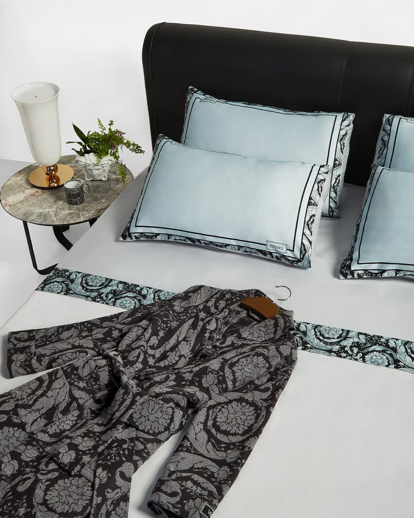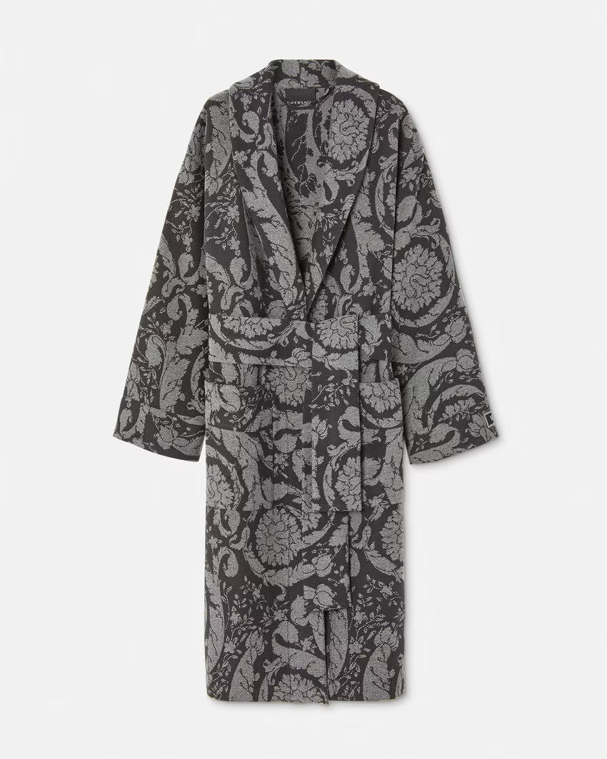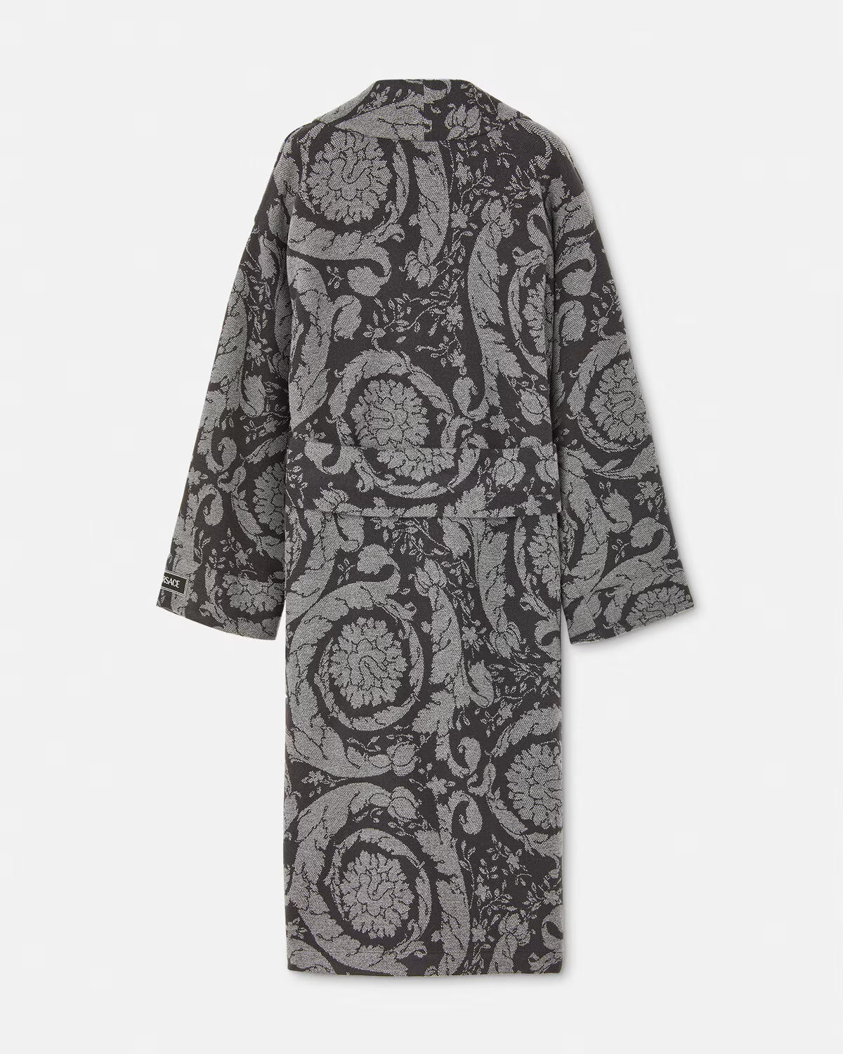 This belted robe is crafted from soft cashmere in jacquard featuring a Barocco pattern and front patch pockets.