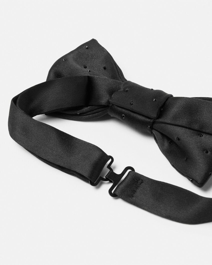 A bow tie crafted from silk-satin and embellished with crystals.